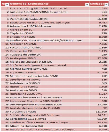 2. Hay desabastecimiento de medicamentos esenciales como: a) norepinefrina de uso en pacientes con paro cardíaco y que puede significar la vida de un paciente; b) medicamentos para pacientes adultos y niños con cáncer, estos medicamentos no existen desde al año 2011; c) No hay existencia de anestesia para bloqueo raquídeo para cesárea.